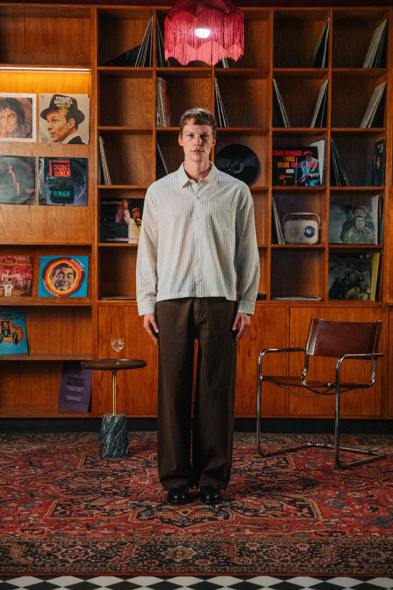 Straight-leg denim work pants in a deep cigar brown, inspired by classic utility design. Finished with side adjuster buckles, silver rivets and detailed stitching throughout.