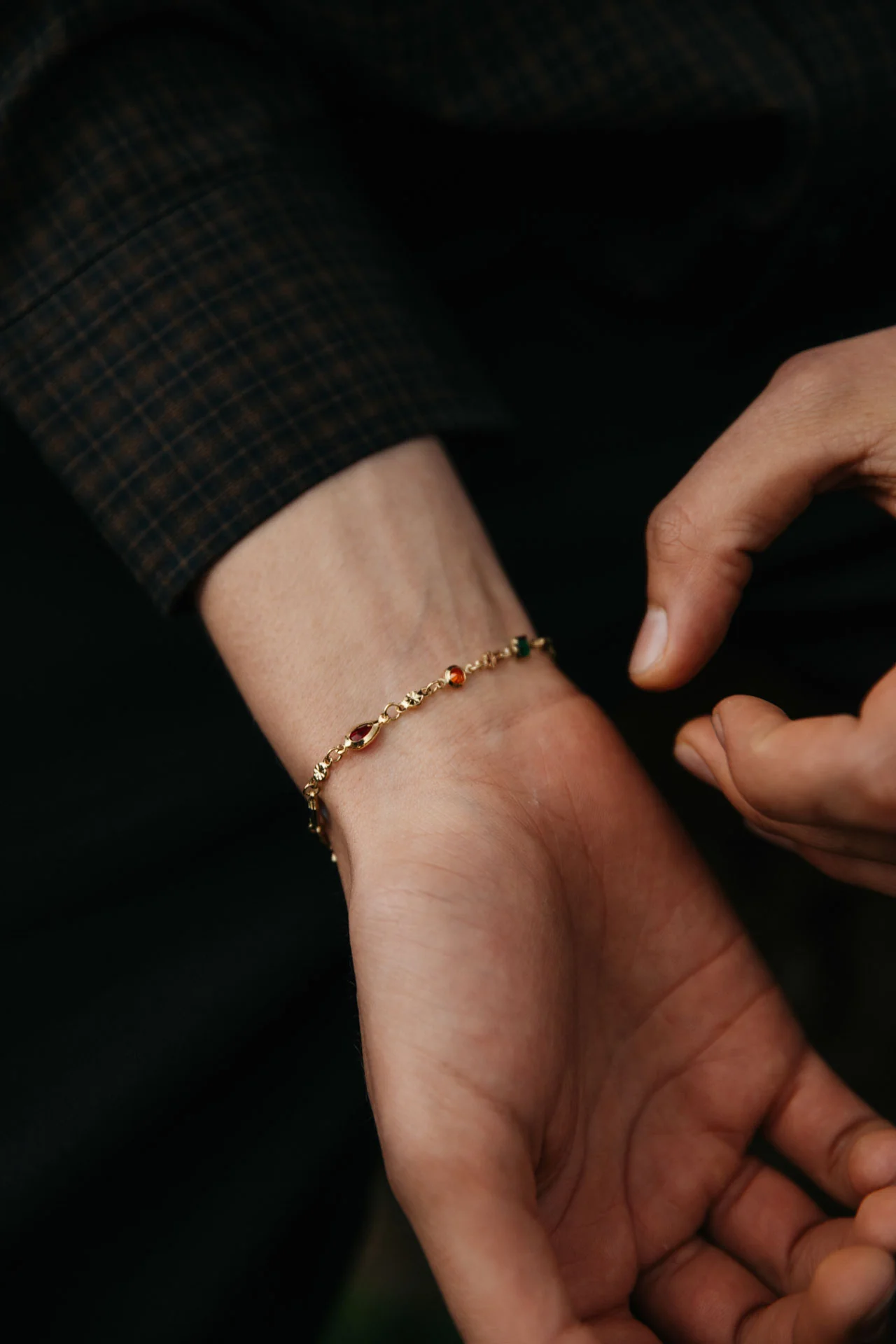 Droplets of summer that glisten on the wrist. Think of the rainbow effect of a crystal hanging in a window, that’s the magic of Espina.