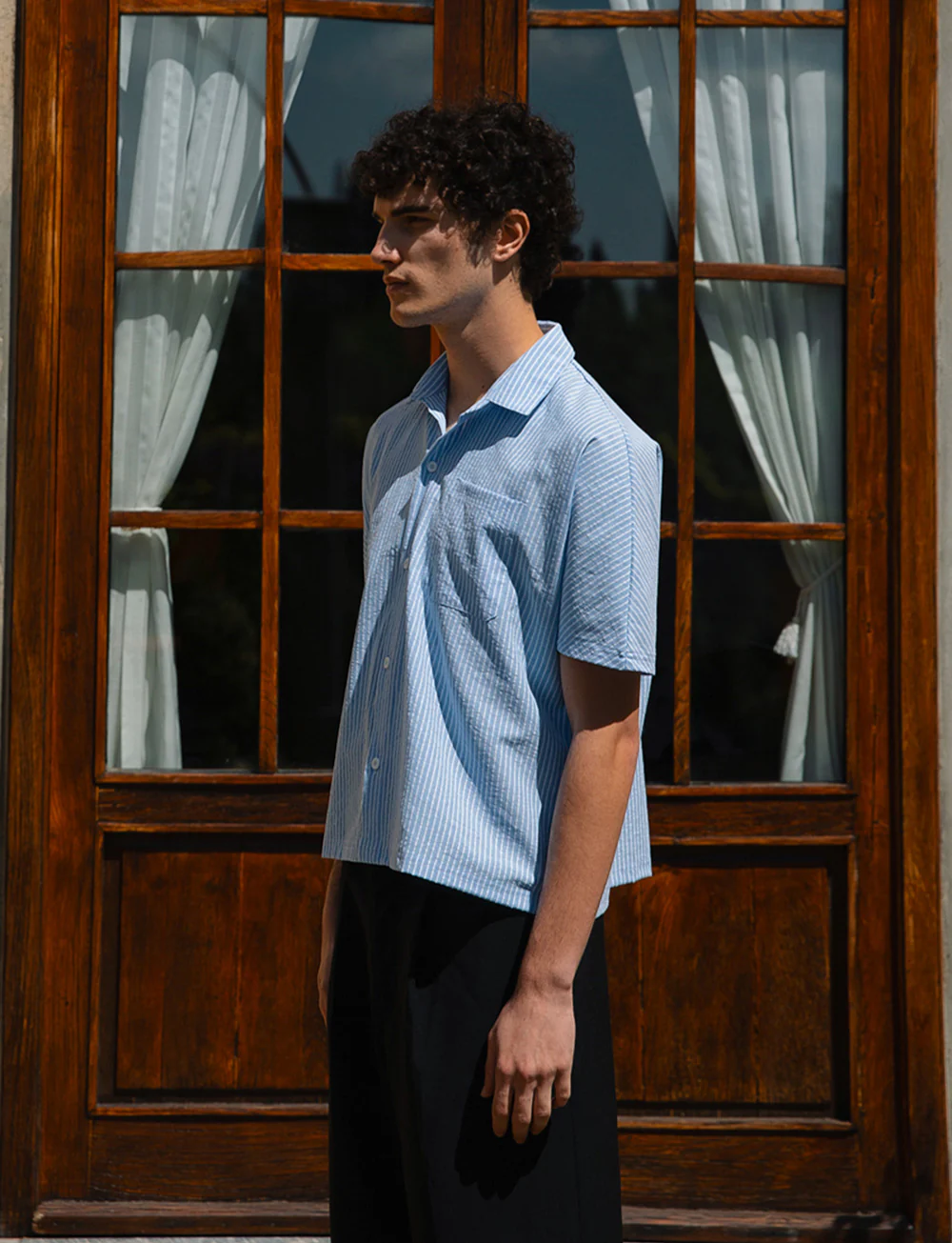 We searched heaven and earth and still couldn’t find the perfect striped short-sleeve shirt – so we made it. Made from 100% cotton, it features a boxy fit, slight crop and a front chest pocket.