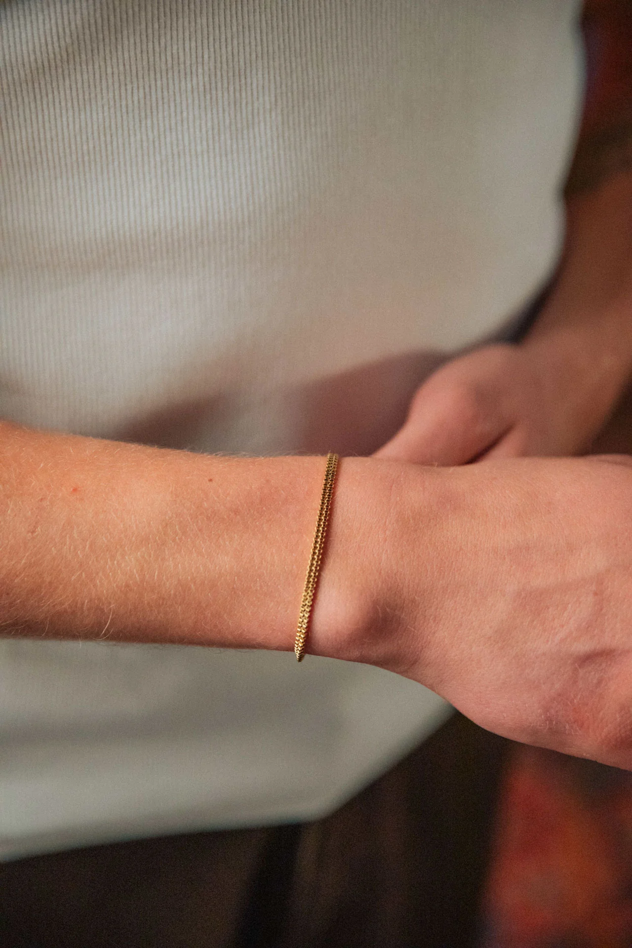 A double box chain bracelet that proves gentle is powerful. This fluid chain rests naturally, making it perfect for every day wear.
